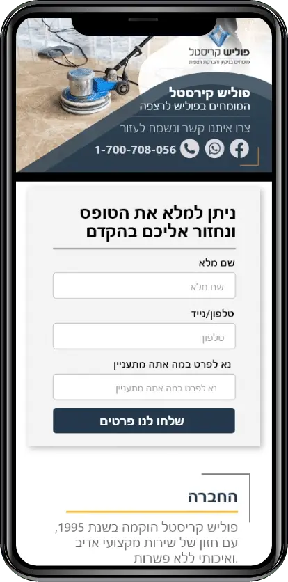 עיצוב ואפיון דף הנחיתה אשר מעביר את שירותי העסק ואת המקצועיות, פירוט שירותי הניקיון לדירות ובתים חדשים וישנים, פוליש לרצפות מכל סוג וליטוש לרצפות אבן ושיש.