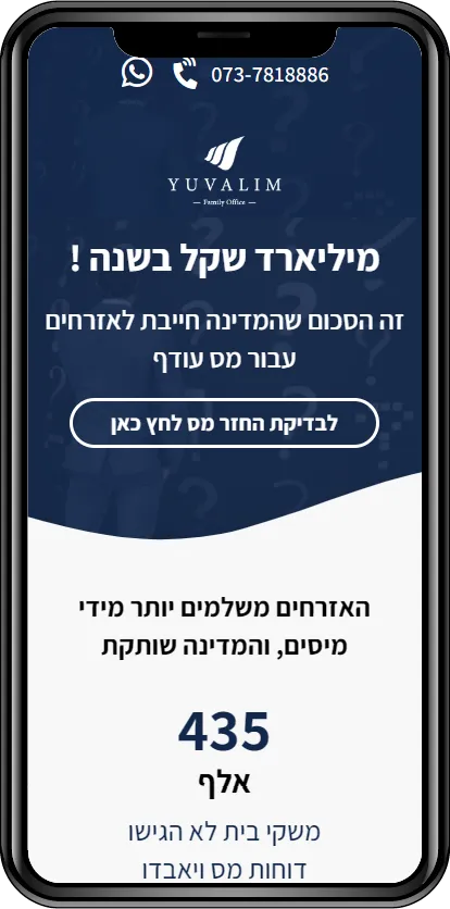 יובלים פמילי אופיס, הדף נועד למטרת שאלון שלבים דיגיטלי, לבדיקה האם מגיע לכם החזר מס.
