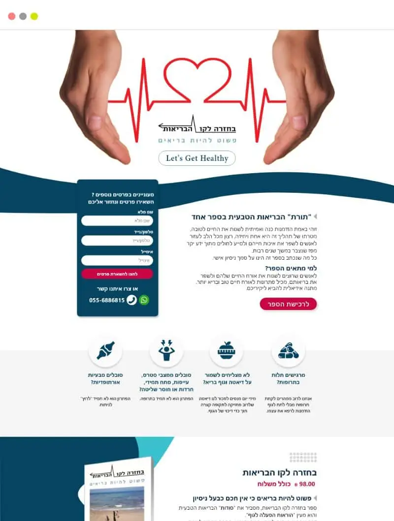 לעצב דף נחיתה שמדגיש את את הספר שמכיל פתרונות לאורח חיים טוב ובריא יותר, לעזור לאנשים שרוצים לשנות את אורח החיים שלהם.
